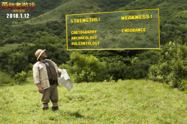 由巨石强森、凯文•哈特、“阿宝”杰克•布莱克、“星云”凯伦•吉兰、尼克•乔纳斯等一线好莱坞群星联袂主演的动作冒险巨制《勇敢者游戏:决战丛林》定档2018年1月12日全国上映。片方日前发布一支“女神教授”预告,生活在粉色世界里的美女网红贝珊妮穿越游戏世界变成一身肥腻的中年大叔,由杰克•布莱克扮演的胖大叔谢利•奥布伦教授不仅上演对自己身体再认识的尴尬桥段,还要其他队友共同经历意想不到的勇敢者大冒险!