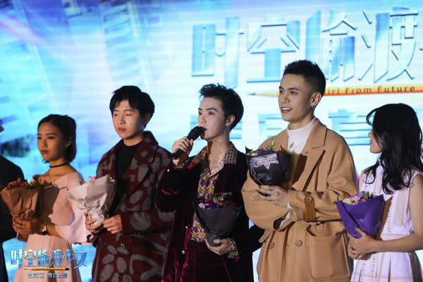 值得一提的是女主演王安琪在拍摄该片时年仅13岁,却在这部处女作中表现惊艳,没有教条式的演技,只有青春期少女自然而然的情感流露和天马行空的故事。不安分的未来少女,在时空不断刷新、记忆不断遗忘的残酷青春里,坚强、勇敢的少女形象深入人心。而王晨饰演的学渣苏小明,也让人联想到当年感动过无数年轻观众的柯景腾、徐太宇,青春感十足,还在上海戏剧学院读书的他,也曾出演《将军在上之时空恋人》,和影片的另一位男主演高寒成为本片的颜值担当,与王晨不同的是,高寒饰演的钱森是一名基因优质的高冷禁欲系学霸,也是Anki77选择优质种子的目标对象,三人之间将展开一段怎样的跨时空三角关系,令人好奇。活动现场,还有“萌贱”富二代饰演者廖成霖与“口吃女孩”饰演者严忆琳 互相调侃,神还原影片中的角色,使得全场爆笑连连。