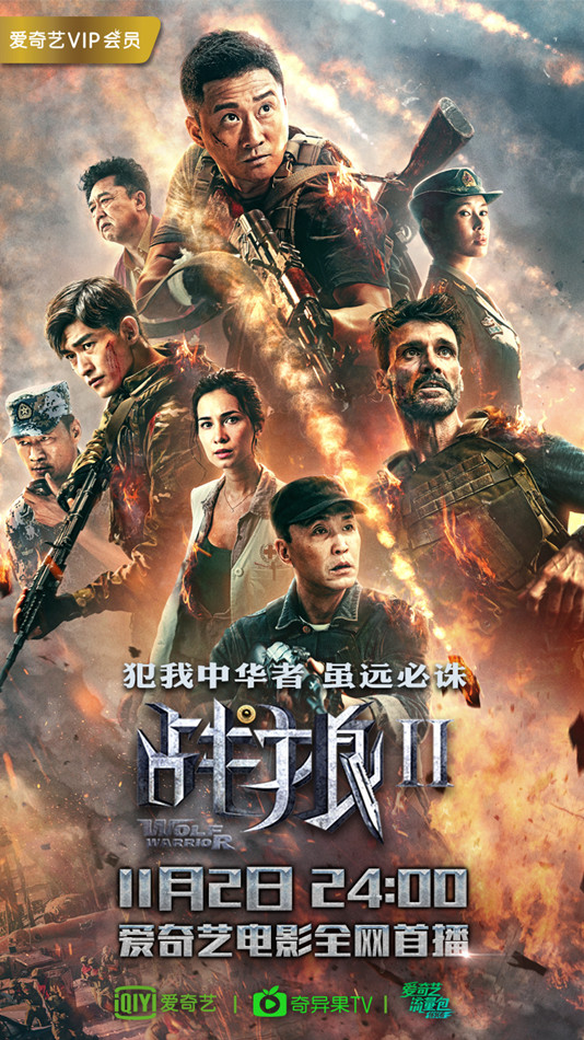 犯我中华者虽远必诛!当《战狼2》以56.8亿震撼世界的成绩圆满收官之时,这句话也已经成为2017年截至目前最为观众最为耳熟能详的电影台词。今天,这部目前华语影史票房top1、全球影史单一市场观影人次冠军之作已以最迅猛姿态正式登陆爱奇艺电影,热血震撼出击,威力持续来袭!而这匹硬汉猛狼的上线,不仅让观众热血激昂,也强势揭开了爱奇艺电影十一月豪华片单!