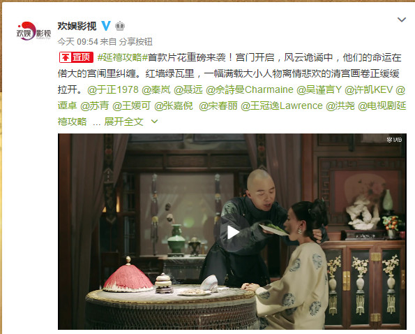 据悉,《延禧攻略》目前正在紧张的后期制作当中,敬请期待!