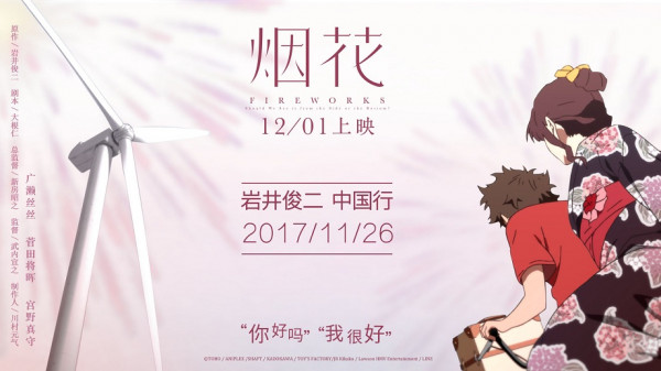 今日,日本夏日热门动画电影《烟花》继公布内地定档12月1日后,又公布了一则重磅消息:《烟花》原作者岩井俊二将于11月26日来到中国出席电影宣传活动。这也是岩井俊二首次为动画电影保驾护航。
