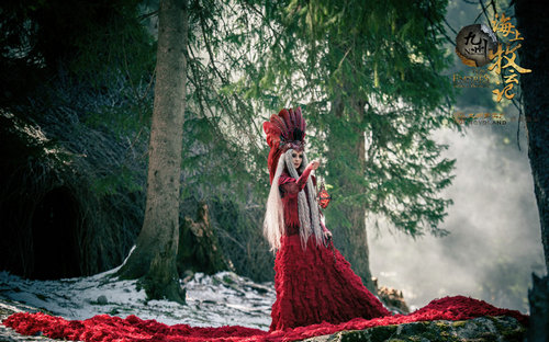 剧中,李心艾的造型着实给角色平添了很多鬼魅的神秘色彩,据悉,这一身红袍女巫的单套服装制作工时就超过330小时,耗费羽毛5000余片。然而这套服装也让李心艾的拍摄相当的辛苦,她回忆道:“女巫袍大概用一千多米布料做成,上身两臂是网纱手制的真羽毛贴在上面,不可以碰,需要工作人员帮我穿,穿上后也不能乱动。穿戴过程需要40分钟,新疆的冬天很冷,在森林里又不能在外面披衣服,拍摄的时候相当冷。”这也充分体现了整部剧匠心的制作和演员精益求进的态度。李心艾出场时的红鸟女巫老年装也是自我突破大尺度挑战,不惜“自毁形象”而达到角色的最佳呈现。网友纷纷表示心疼,点赞如此敬业的李心艾。