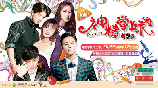《神精学妹》海报由澳门大象影业有限公司出品,腾讯视频独家播出,梁昊执导,张靖宜担任制片人,张靖宜、曾乙同、张浩宇、范玮领衔主演的青春校园网络剧《神精学妹》于昨日欢乐收官。患有灵魂占有妄想症的夏米,在柯瑞宇的深情告白中,勇敢面对不完美的自己,为了追求自己的音乐梦想,毅然与柯瑞宇分别到国外深造,两年后,二人在澳门街头偶遇后牵手一起离开。