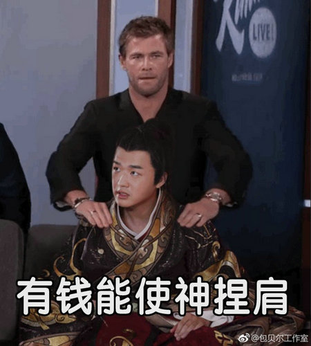 扒了一下工作室的微博,真是不搞事情不舒服啊。连连Diss老板娘包文婧4条微博,被包文婧微博怼回来。现在又转战“调戏”包贝尔了:双12当天P图有钱能使神捏肩的表情包并配文:老板,听说今天是双12,暗指双12啦,老板,你不得表示表示?