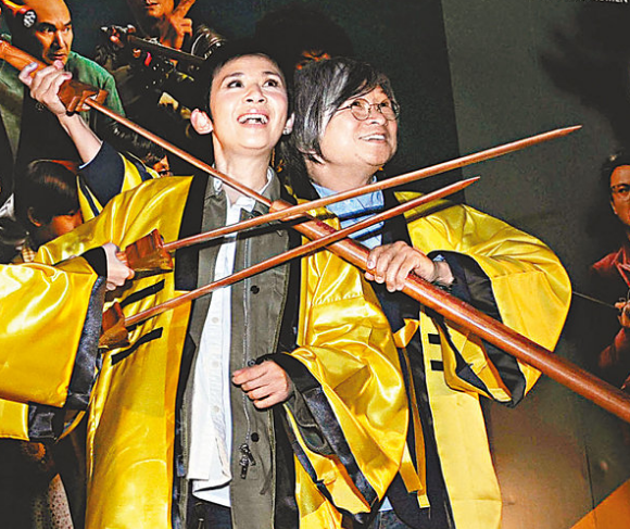 吴君如和另一半陈可辛穿上道士袍跑宣传