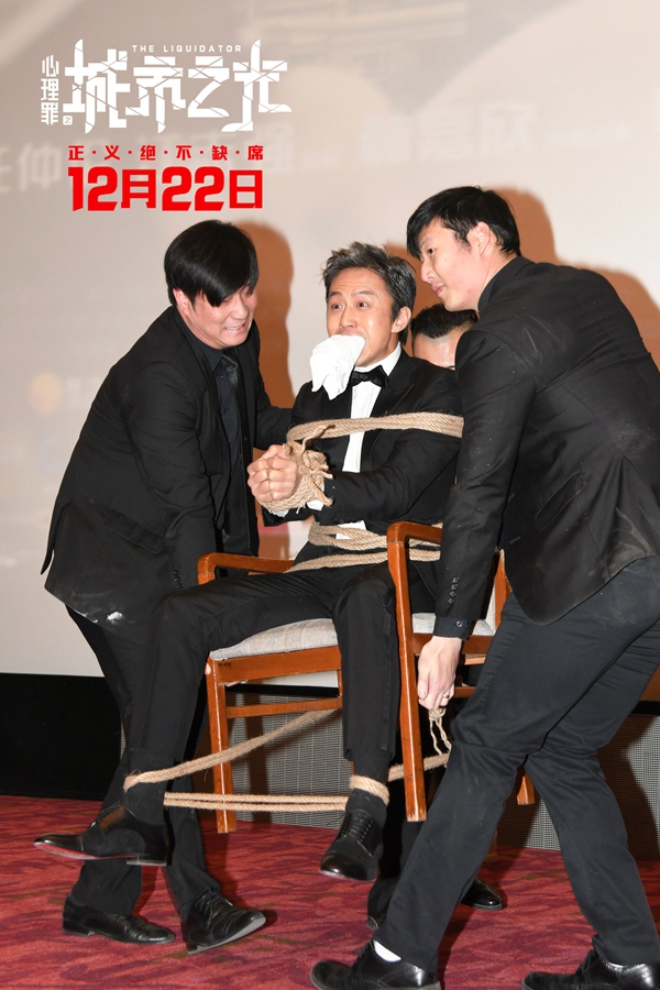 12月18日,年度华语犯罪动作巨制《心理罪之城市之光》继北京首映礼后,趁热打铁来到上海举行首映礼,监制江志强、任仲伦,导演徐纪周,主演邓超携手阮经天、刘诗诗、文淇出席活动。此前沈阳路演被女特警过肩摔后,邓超曾在微博宣布“不再参加《心理罪之城市之光》的任何宣传活动”,当天现场,邓超遭“五花大绑”被抬上台,为之前立下的Flag付出了代价。当天,主创还互相送“奇葩”圣诞礼物,阮经天送邓超膏药,刘诗诗收到邓超赠送的潮款紫色秋裤,文淇送阮经天“断指饼干”,导演送文淇《五年高考三年模拟》,现场温馨又爆笑,气氛火热异常。